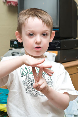 The little one...he came down stairs this morning and announced that he woke up coughing and that he must have swallowed a fly.  He and daddy were talking about catching bug (a cold bug) and somehow they have turned it into swallowing a fly.  Doug does such a good job explaining things to Jake.